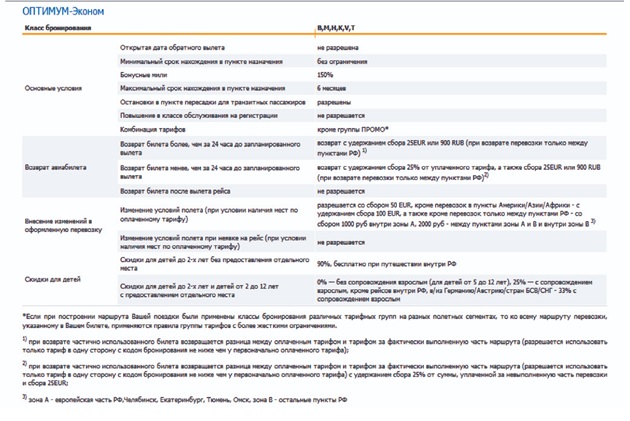 - Особенности маршрута. Может быть оговорено применение тарифа к определенному маршруту, максимальное или минимальное время нахождения в пункте назначения, возможность пересадок и др.
